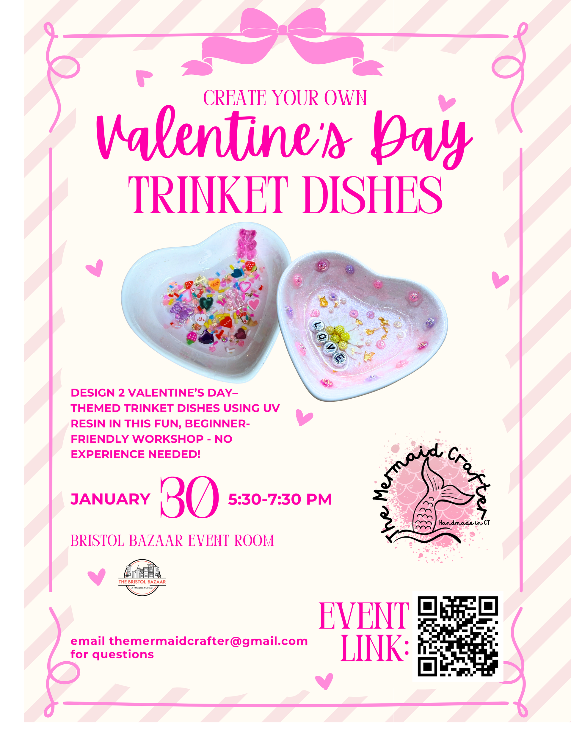 We have a full schedule of classes & workshops that include: Sushi Making, Ceramic Painting, Epoxy Pouring, jewelry making & so much more!
