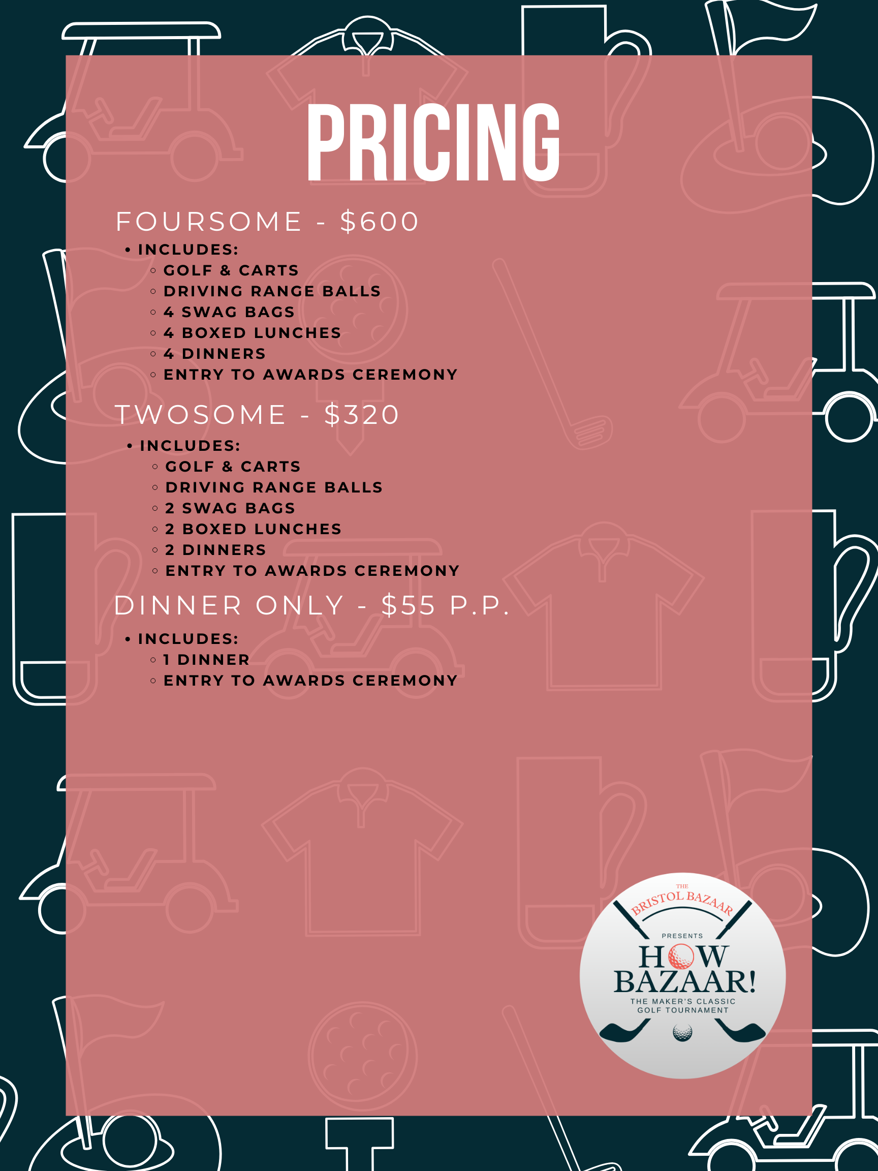 - Provides boxed lunches for all golfers