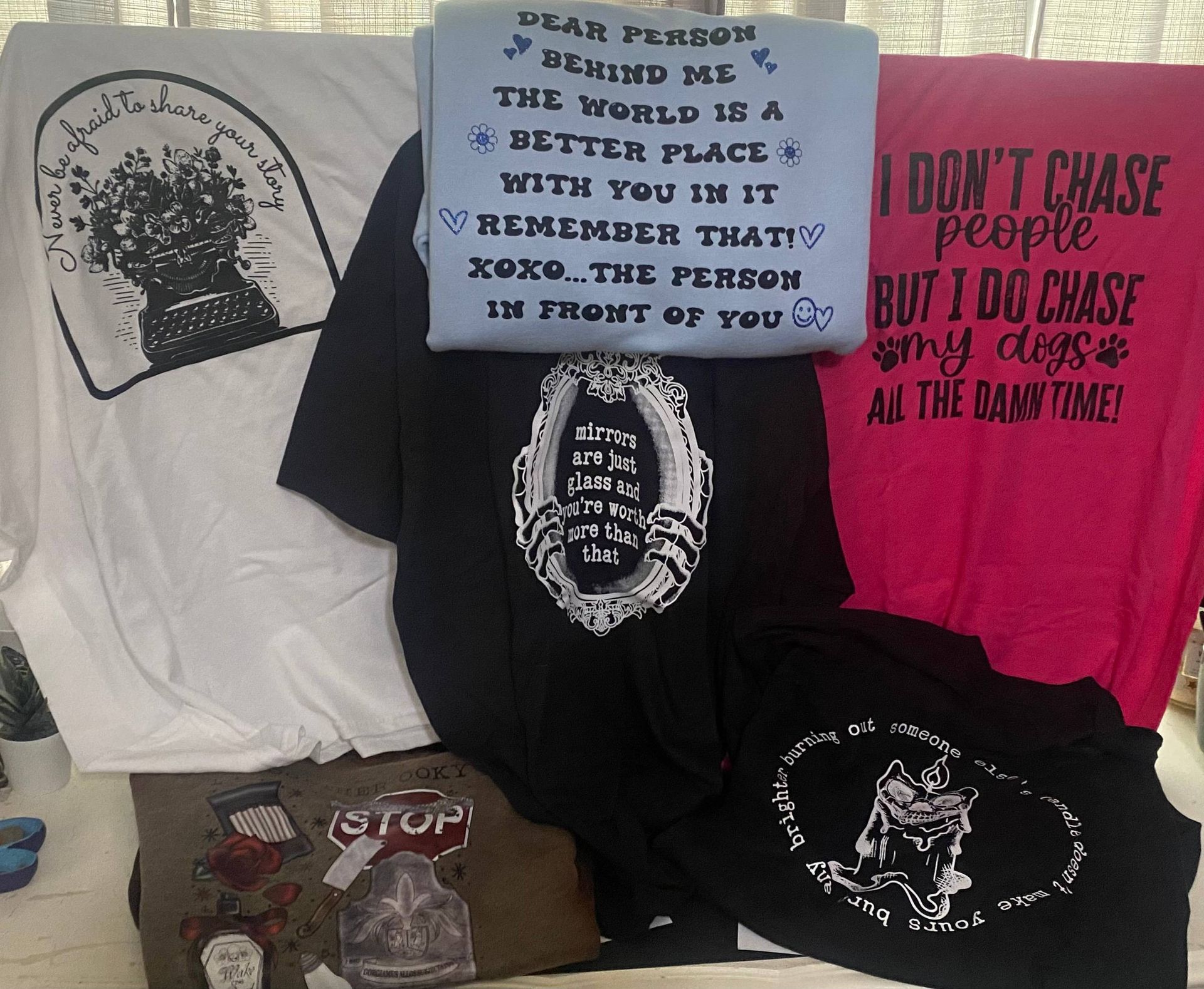Handmade stickers, tumblers, t-shirts & more!